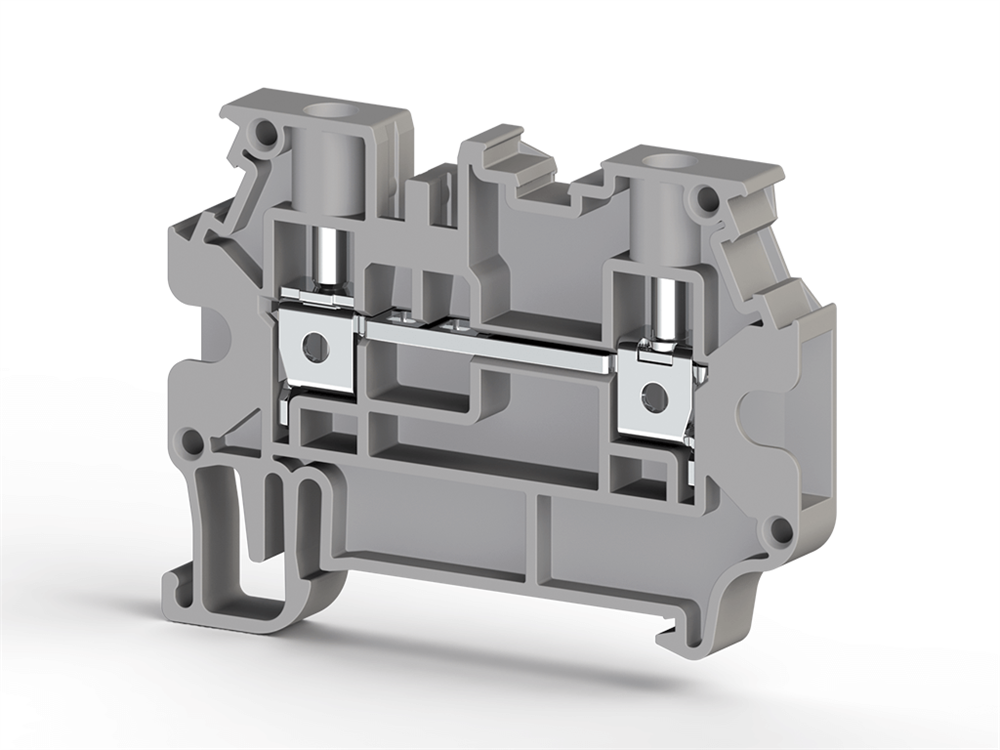 Клеммник на DIN-рейку 4мм.кв., 2 ряда перем., (серый); AVK 4R