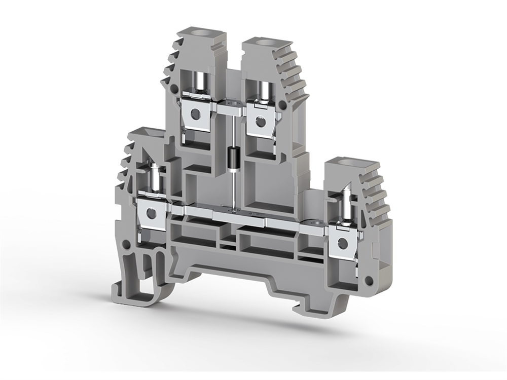 Клеммник 2-х ярусный 4мм.кв., с диодом, (серый); PIK4ND-A