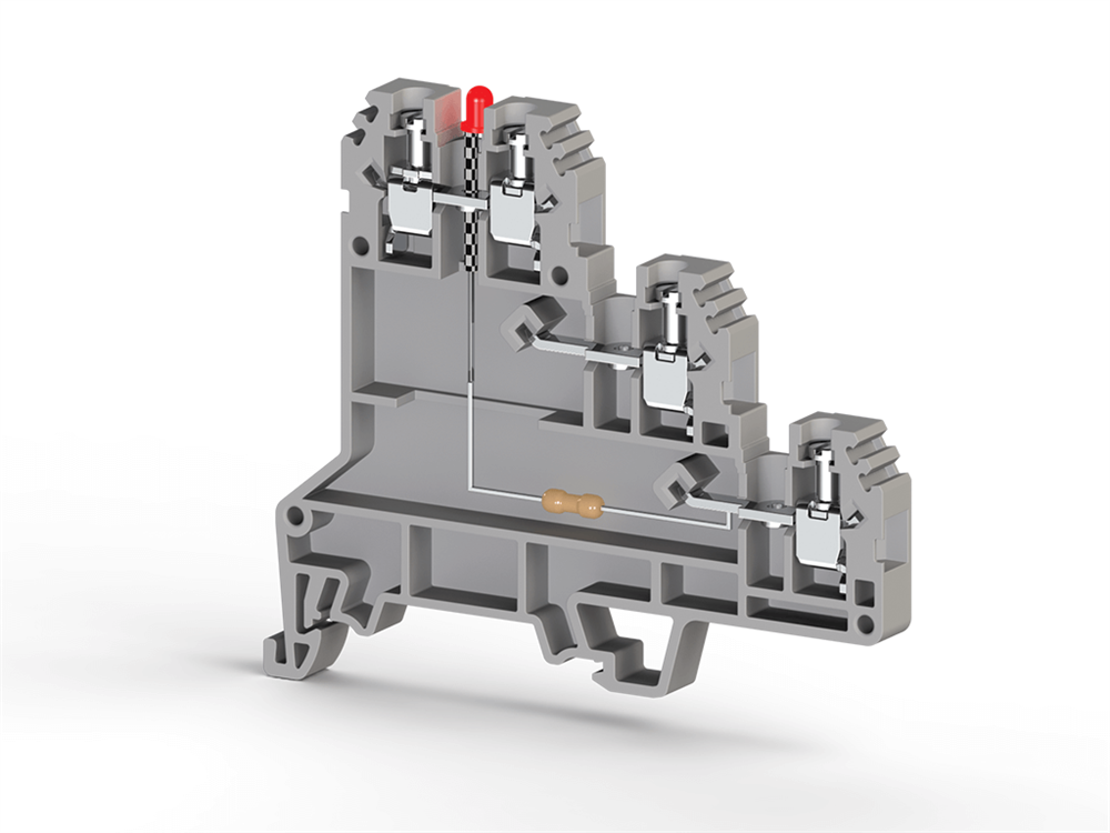 Клеммник 3-х ярусный для датчиков, 2,5мм.кв., с индикацией 24 VDC, (серый); PUK 3 SLD (NPN)