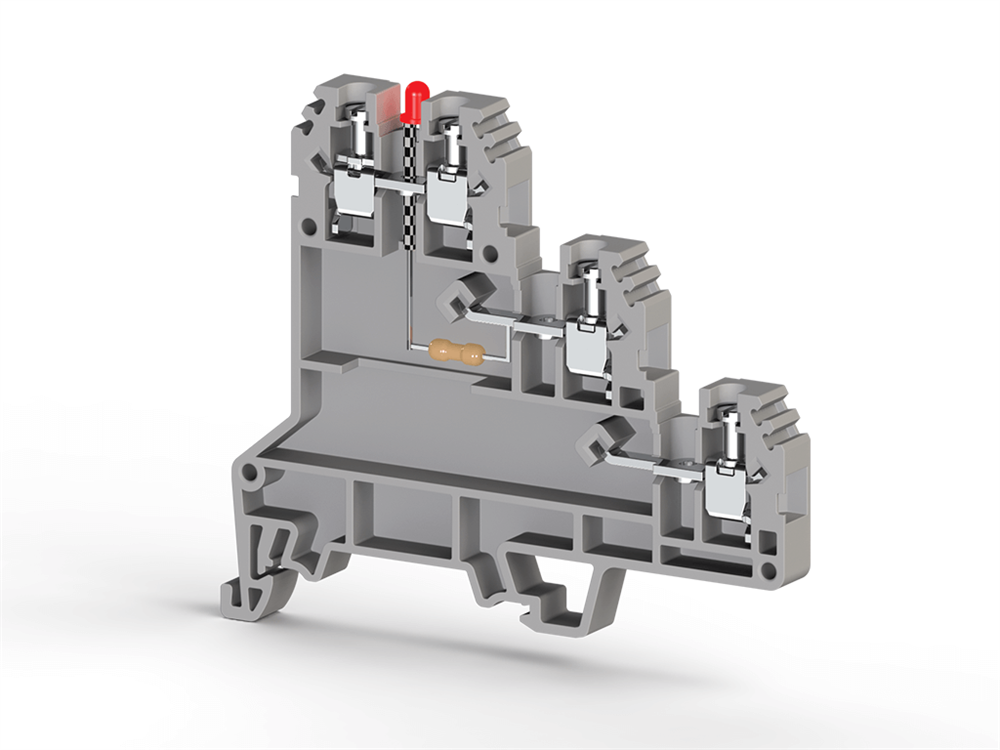 Клеммник 3-х ярусный для датчиков, 2,5мм.кв., с индикацией 24 VDC, (серый); PUK 3 SLD (PNP)