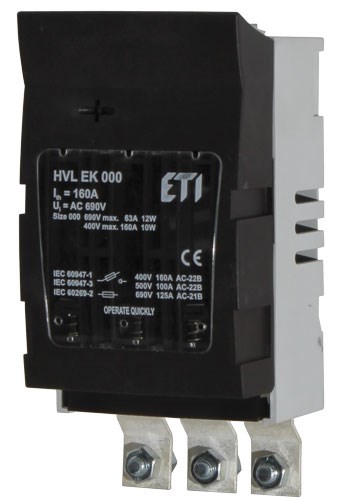 Разъединитель HVL-P EK 000 3P 100A (Клеммы M8-M8, с доп. клеммой)