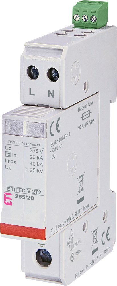 Ограничитель перенапряжения ETITEC V 2T2 255/20 (2+0) RC