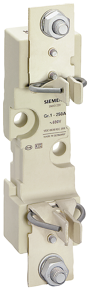 ОСНОВАНИЕ ПЛАВКОЙ ВСТАВКИ Uном.=660В, Iном.= 250А, ТИПОРАЗМЕР 1, 1-ПОЛЮСН. ДЛЯ ПОДКЛЮЧЕНИЯ К ДВОЙНОЙ ШИНЕ