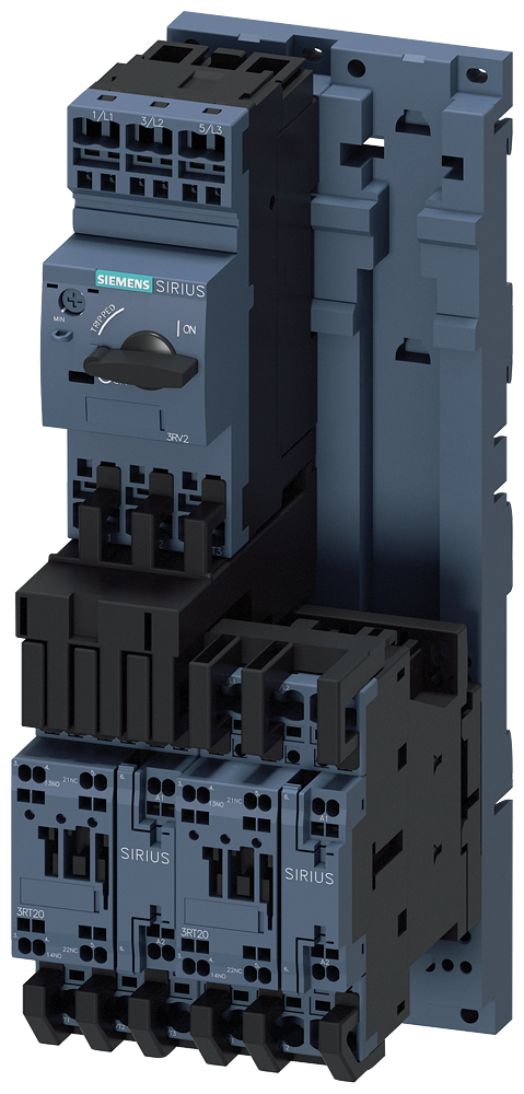 LOAD FEEDER FUSE SW. REVERSING OPERATION, AC 400V, MDL. S0, 4.5. . .6.3A, AC 230V SPRING-LOADED TERMINAL FOR МОНТАЖ НА СТАНДАРТНУЮ МОНТАЖНУЮ РЕЙКУ, WITH MOUNTING RAIL ADAPTER COORDINATION TYPE 2,IQ = 150KA (ALSO COMPLIES WITH COORDINATION TYPE 1) 1NO+1NC (CONTACTOR)