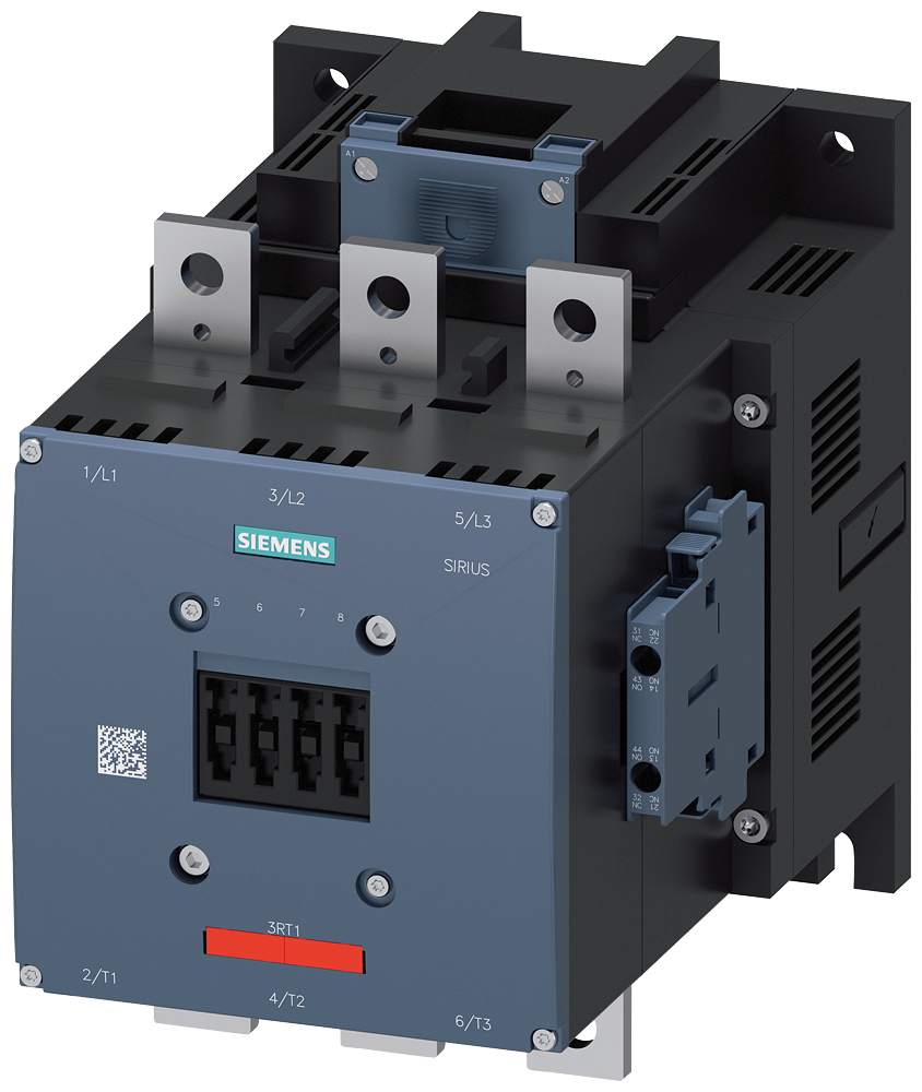 Power contactor, AC-3 500 A, 250 kW / 400 V AC (50-60 Hz) / DC 220-240 V UC Auxiliary contacts 2 NO + 2 NC 3-pole, size S12 Busbar connections Operating mechanism: conventional screw terminals Perm. mount. auxiliary switch block DIN 50012