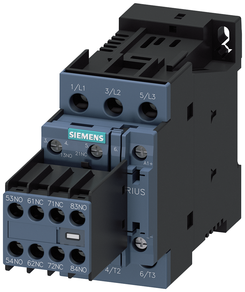 power contactor, AC-3 17 A, 7.5 kW / 400 V 3 NO + 3 NC with 3RH2911-1x A22-0MA0, with plugged-in Diode combination, 24 V DC, 3-pole, Size S0, screw terminal