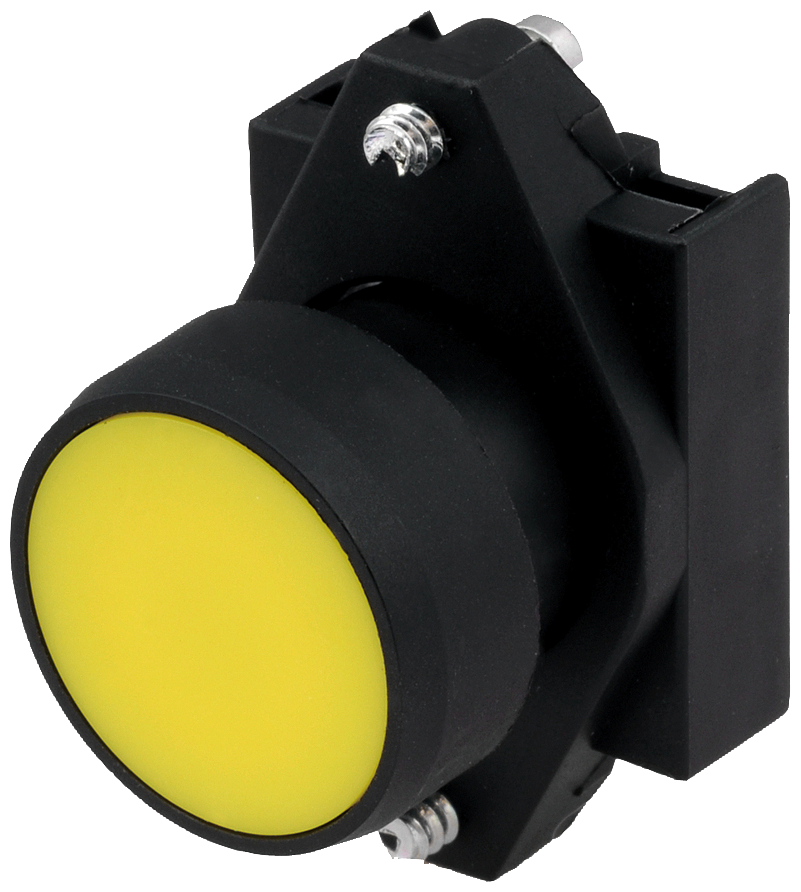 22ММ ПЛАСТИК, АКТУАТОР: ПЛОСКАЯ КНОПКА С ДЕРЖАТЕЛЕМ, ЧЕРНАЯ, БЕЗ ФИКСАЦИИ