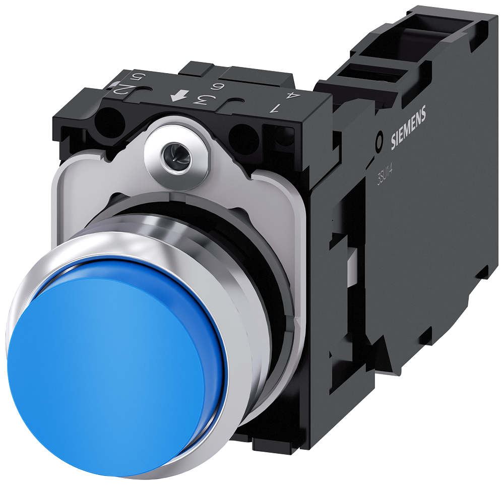 КНОПКА, 22MM, КРУГЛАЯ, МЕТАЛЛИЧЕСКАЯ ГЛЯНЦЕВАЯ, СИНЯЯ, ВЫСТУПАЮЩАЯ КНОПКА, КОНТАКТЫ МГНОВЕННОГО ДЕЙСТВИЯ, С ДЕРЖАТЕЛЕМ, 1NO+1NC, ВИНТОВЫЕ КЛЕММЫ