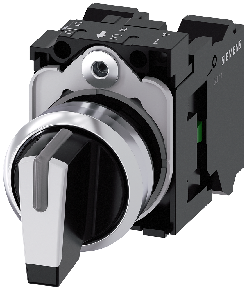 ПОВОРОТНЫЙ ПЕРЕКЛЮЧАТЕЛЬ С ВОЗМОЖНОСТЬЮ ПОДСВЕТКИ, 22MM, КРУГЛЫЙ, МЕТАЛЛИЧЕСКИЙ ГЛЯНЦЕВЫЙ, КОРОТКАЯ ЧЁРНАЯ РУКОЯТКА С БЕЛОЙ ВСТАВКОЙ, 3 КОММУТАЦИОННЫХ ПОЛОЖЕНИЯ I>O