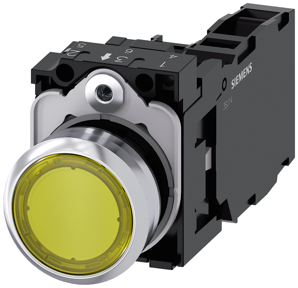 КНОПКА С ПОДСВЕТКОЙ, 22MM, КРУГЛАЯ, МЕТАЛЛИЧЕСКАЯ ГЛЯНЦЕВАЯ, ЖЁЛТАЯ, ПЛОСКАЯ КНОПКА, КОНТАКТЫ МГНОВЕННОГО ДЕЙСТВИЯ, С ДЕРЖАТЕЛЕМ, 1NO+1NC, МОДУЛЬ ПОДСВЕТКИ С ИНТЕГРИРОВАННЫМ СВЕТОДИОДОМ 110V AC, ВИНТОВЫЕ КЛЕММЫ