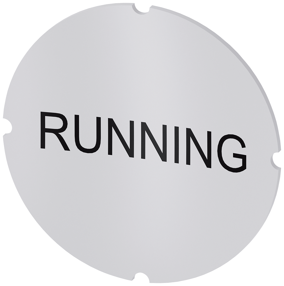 СМЕННЫЙ МАРКЕР ДЛЯ КНОПОК С ПОДСВЕТКОЙ, КРУГЛЫЙ, МОЛОЧНОГО ЦВЕТА С ЧЕРНОЙ НАДПИСЬЮ, С МАРКИРОВКОЙ: RUNNING