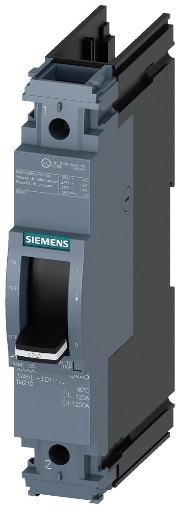 Автоматический выключатель 3VA5 UL Frame 125 Switching capacity class H 50 kA @ 277 V 1-pole, system protection TM210, FTFM, In=20 A Overload protection Ir=20 A non-adjustable short-circuit protection Ii=15 x In without connection
