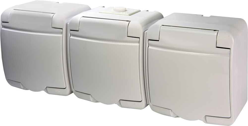 Розетка 3-я с з/к Schuko RHE-3s (белая/белая крышка, IP54)