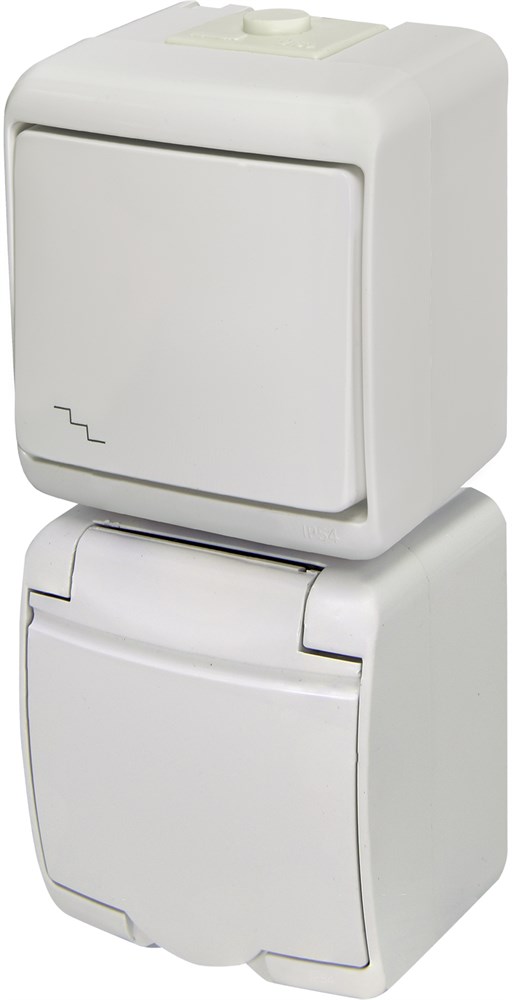 Микс верт.: Лестн.выкл.+ 1-я розетка с з/к VRHP-3s (белая/бел. крышка)
