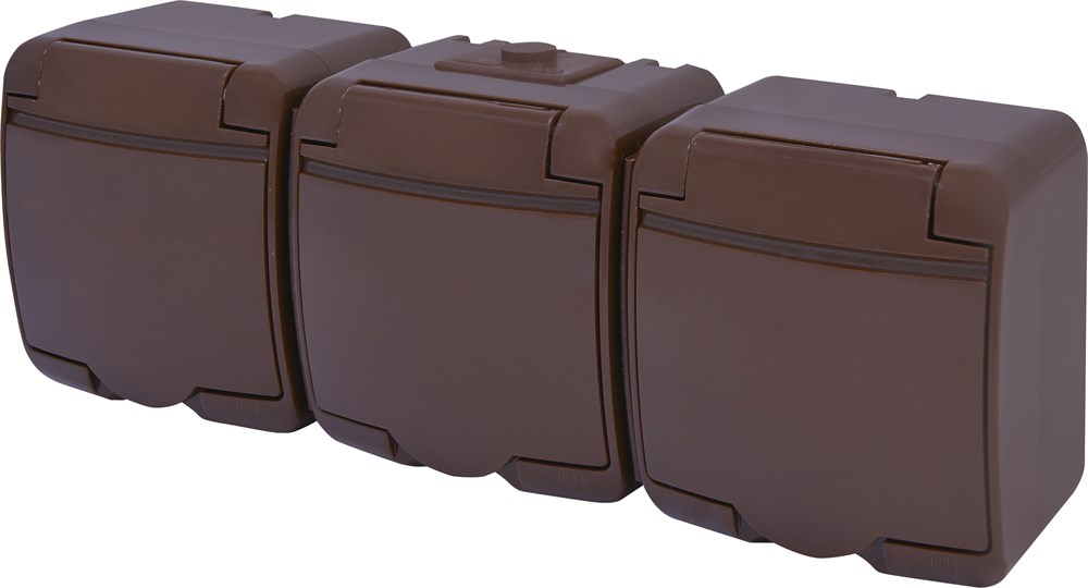 Розетка 3-я с з/к Schuko RHE-3s-KR (коричн./коричн. крышка, IP54)