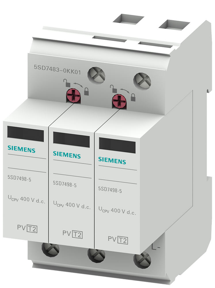 surge arrester, T2, Uc 600 V DC, Imax 40 kA short-circuit strength 2000 A, 2+V circuit, for isolated and grounded PV systems