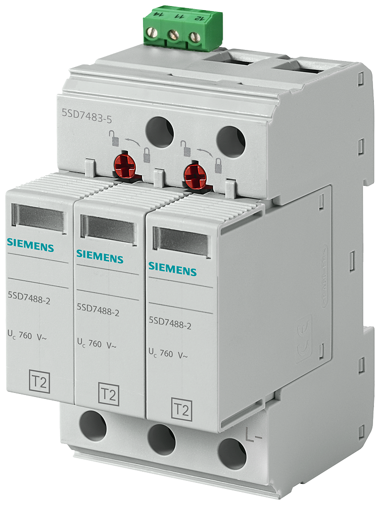 ОГРАНИЧИТЕЛЬ ПЕРЕНАПРЯЖЕНИЙ ТИП2,ВТЫЧНЫЕ МОДУЛИ, UC 750V AC,3-POLE, FOR 4-CONDUCTOR POWER SUPPLY SYSTEMS (L1,L2,L3, PEN), REMOTE SIGNALING CONTACT