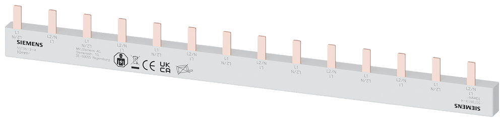 Pin Busbar, 10mm2 connection: 3p 14x MCB 1-pole touch protected 14MW fixed length