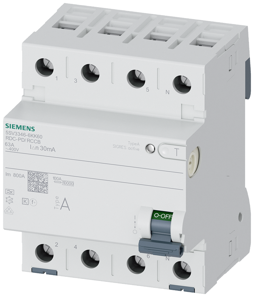 Residual current operated circuit breaker, 4-pole, Type A, In: 63A, 30mA, 6mA DC, Un AC: 400V, Electro Mobility