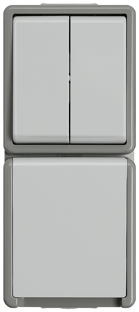 DELTA FLAECHE IP44 КОМБИНАЦИЯ ВЫКЛЮЧАТЕЛЯ 1НО И РОЗЕТКИ SCHUKO С ЗАЩИТОЙ ОТ ПРИКОСНОВЕНИЯ РАЗМЕРЫ 151X66X54 MM
