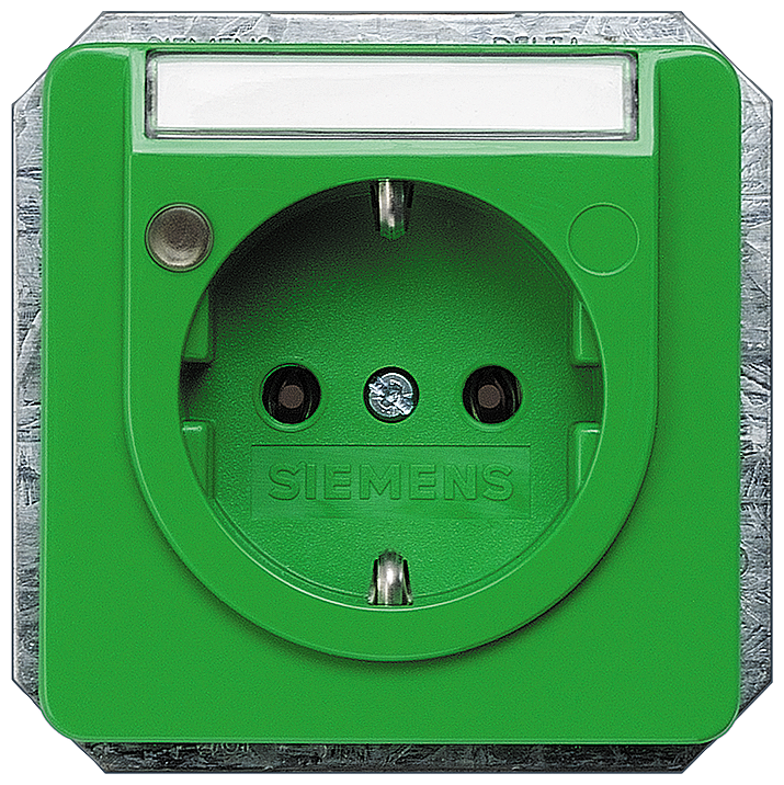 DELTA PROFIL ЗЕЛЕНЫЙ РОЗЕТКА SCHUKO 10A DC/ 16A AC 250V С БЕЗРЕЗЬБОВЫМИ КОНТАКТНЫМИ ЗАЖИМАМИ С ИНДИКАЦИЕЙ СТАТУСА И ПОЛЕМ ДЛЯ НАДПИСИ 65Х65 ММ