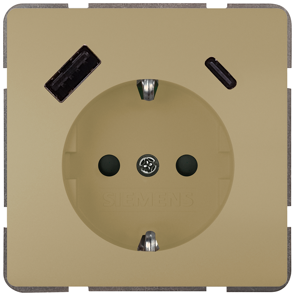 DELTA style malt gold USB-SCHUKO socket outlet 2 USB A+C Power: Up to 18W