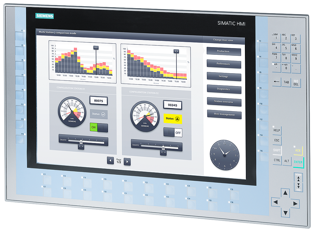 SIMATIC HMI KP1500 Comfort, Comfort Panel, key operation, 15" widescreen TFT display, 16 million colors, PROFINET interface, MPI/PROFIBUS DP interface, 24 MB configuration memory, WEC 2013, configurable as of WinCC Comfort V14 SP1 with HSP, ambient temperature up to 45 °C