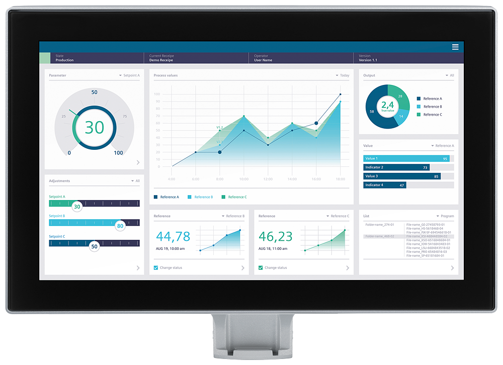 SIMATIC HMI MTP1900 PRO, for supporting foot (expandable, flange at bottom), neutral front, 18.5" widescreen TFT display, 16 million colors, PROFINET interface, configurable as of WinCC Unified Comfort V18, contains open-source software, which is provided free of charge