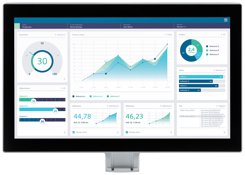 SIMATIC HMI MTP2200 PRO, for supporting foot (expandable, flange at bottom), neutral front, 21.5" widescreen TFT display, 16 million colors, PROFINET interface, configurable as of WinCC Unified Comfort V18, contains open-source software, which is provided free of charge