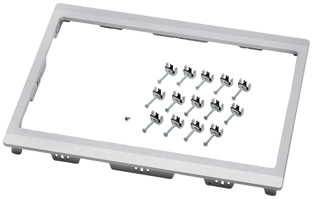 adapter frame widescreen for 15" touch devices, so that small 15" devices fit into the installation cutout of large 15" widescreen devices, scope of supply: 1 adapter frame including mounting accessories
