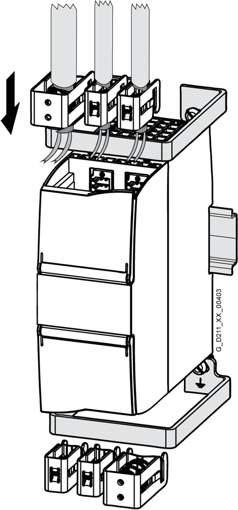 SIMATIC MICRO-DRIVE SBS1-90, PDC shield bracket set with bracket length 90 mm 2 terminal clamps 20 mm, 3 terminal clamps 12 mm, 1 grounding strap