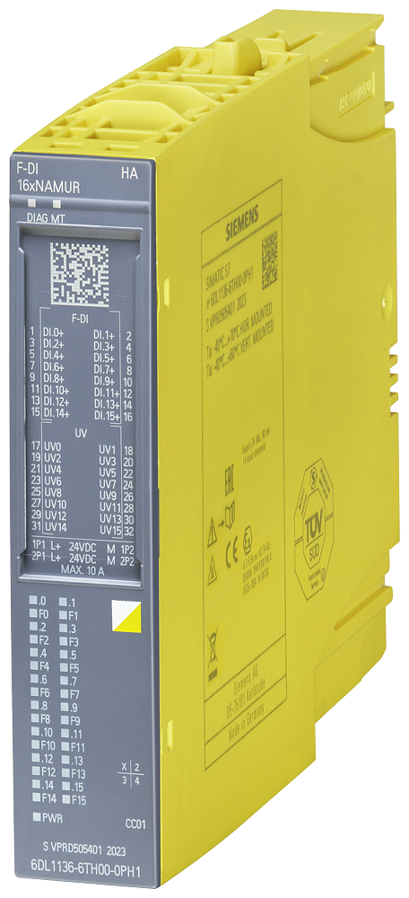 SIMATIC ET 200SP HA, digital input module, safety-oriented F-DI 16xNAMUR HA, SIL3 (IEC 61508), up to PL e (ISO 13849-1) suitable for terminal block H0, H1, color code CC01, channel diagnostics