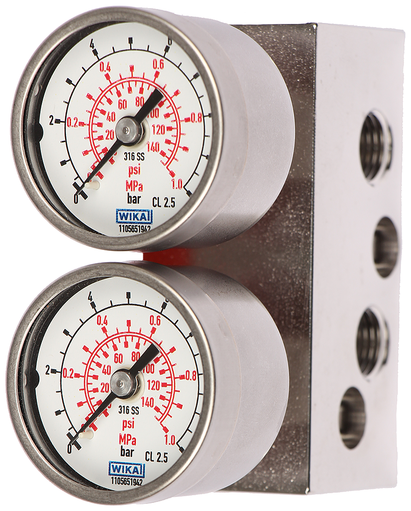 МАНОМЕТР ИЗ НЕРЖАВЕЮЩЕЙ СТАЛИ 316, БЛОК ИЗ НЕРЖАВЕЮЩЕЙ СТАЛИ, ПРОСТОГО ДЕЙСТВИЯ 1/4-18 NPT, ШКАЛА В MПA, БАР И PSI