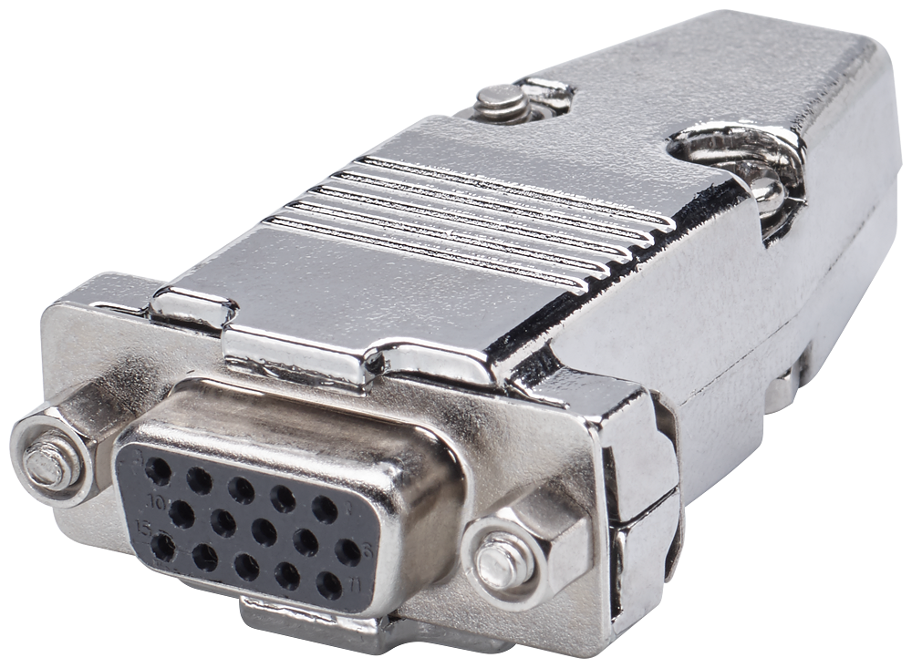 signal connector for connection to S-1FL6 HI 15-pole sub-D HD female soldered screw interlock UNC 4-40 Cable terminal 7 mm Nickel-plated metal enclosure Contains 5 units