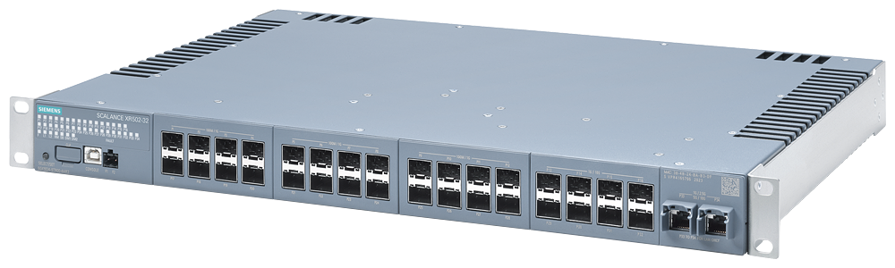 SCALANCE XR502-32; managed layer 3 IE switch, 19" rack; 2x 1G/2.5G/5G/10 Gbps RJ45 port 24x 100M/1G SFP port; 8x 1G/10G SFP+ port; LED diagnostics; error signaling contact; select/ set button; PROFINET I/O device; network management; integrated redundancy manager; office; features (RSTP, VLAN, IGMP,..); CLP included in scope of supply; power supply 2x 230 V AC
