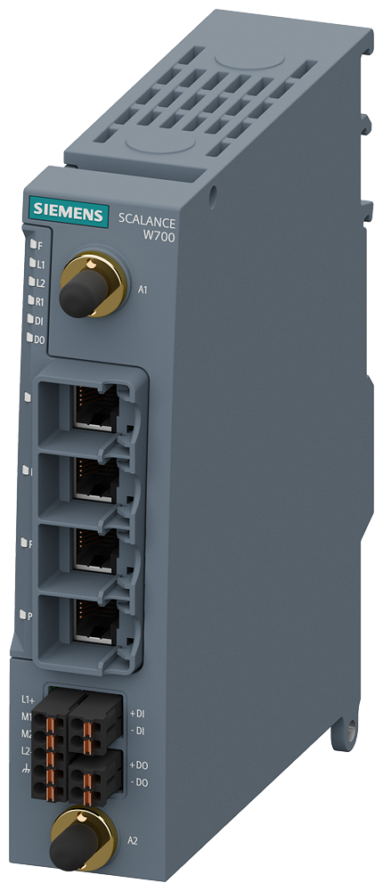IWLAN access point, Middle East version, SCALANCE WAM763-1 ME, 1 radio, 2.4/5 GHz, IEEE 802.11ax (Wi-Fi 6), 2 R-SMA connections, iFeatures support via CLP, 1201 Mbps (gross), 4x10/100/1000 Mbps RJ45 ports, redundant 24 V DC, terminal block, IP30, -30..+60 °C, CLP slot, DI/DQ, terminal block, observe national approvals! CERT ID: MSAX-W1-RJ-E2 operation in Egypt and Israel. scope of supply: cover CLP slot, covers antenna connections, 3x terminal block