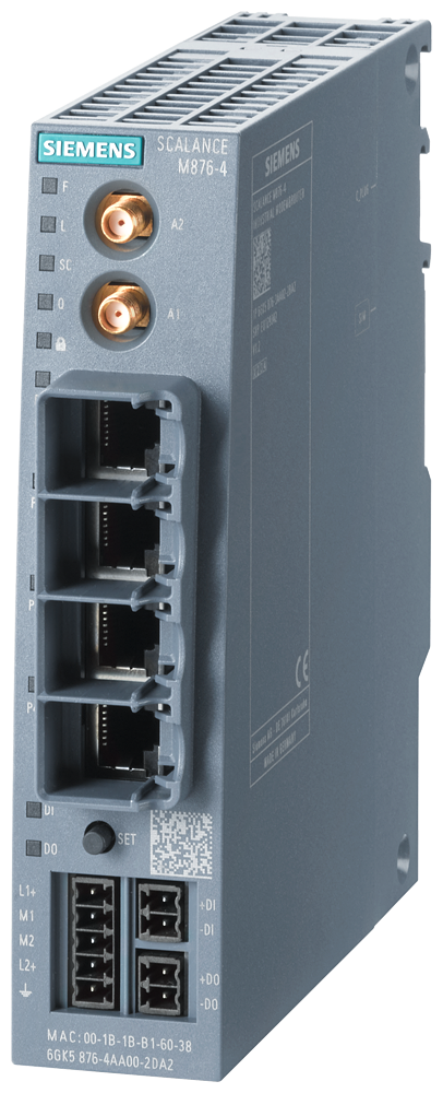 SCALANCE M876-4 LTE (4G) NAM; for wireless IP communication from Ethernet- based automation devices via LTE (4G) mobile radio, optimized for use in North America, VPN, Firewall, NAT; 4-port switch; 2x SMA antennas, MIMO Technology; 1x digital input, 1x digital output; observe national approvals