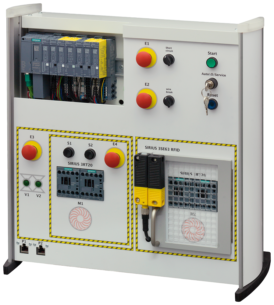 SAFETY PERIPHERY CASE S7-1500F THE TRAINING CASE IS USED TO SIMULATE REALISTICALLY PERIPHERY TO PRACTICE THE PROGRAMMING, OPERATING AND COMMISSIONING OF FAILSAFE MEMORY-PROGRAMMABLE CONTROLS SIMATIC S7-1500 WITHIN TOTALLY INTEGRATED AUTOMATION. THE TRAINING CASE CONSISTS OF: - ET200SP WITH IM 155-6PN WITH DIGITAL AND ANALOG F-PERIPHERY - F-SIMULATOR A SIMATIC S7-1500F CPU IS NECESSARY, IT IS NOT INCLUDED