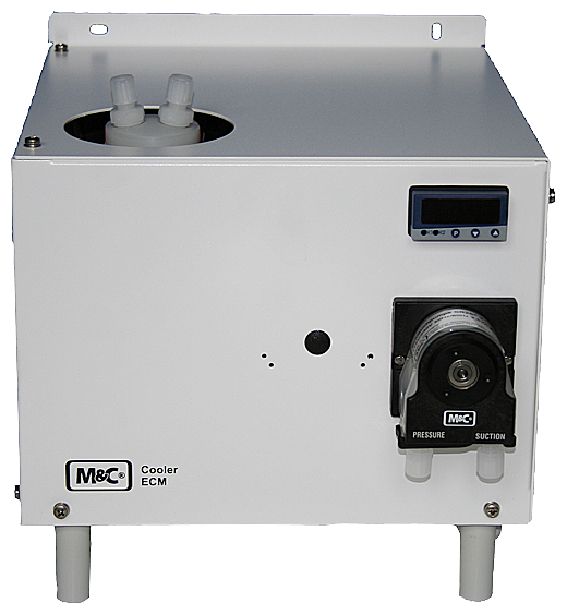 Compressor Gas cooler with 2 heat exchanger of PVDF connection in series HE1 for precondensation HE2 for constant dew point 2 peristaltic pumps for condensate removal 1 Filter with moisture sensor and electronic controller Ambient temp.: +10 to 40 DEG C Gas outlet dew point: +5 DEG C Power supply: 230 V AC, 50 Hz wall mounting enclosure or housing for 19" installation Protection class: 20, Dimens.: 483x268x348 mm