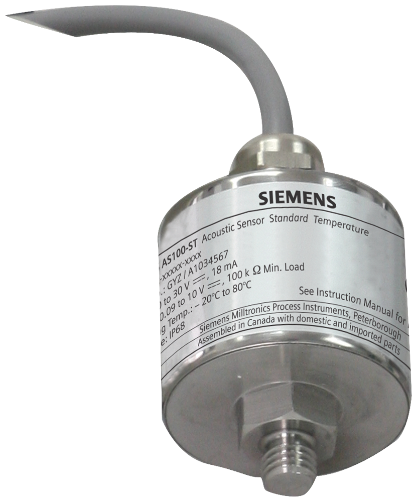 SITRANS AS100 АКУСТИЧЕСКИЙ Sensor: Standard temperature ДАТЧИК С ВЫХОДОМ 4-20МА range (-20 C to +80 C) Cable length: 4 meters (13.12 ft) Sensor mounting: none . Approvals: CE,RCM,FM/CSA Class II Div. I, Groups E,F and G, ATEX II 3D, c/w M20 female adaptor EAC Ex