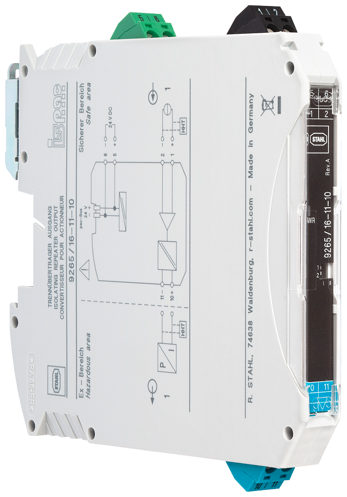 Одноканальный выходной изолятор SITRANS I200 для монтажа на рельсах для сигналов HART 0/4 ... 20 мА. Для обеспечения искробезопасной работы позиционеров, например SIPART PS2, I/p преобразователей и индикаторов. Сертифицирован по стандарту SIL 2 (IEC/EN 61508), ширина 12,5 мм.