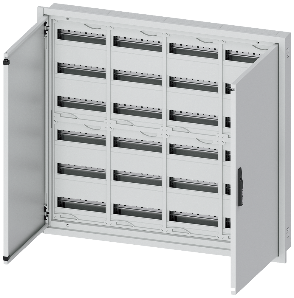 ALPHA 160 DIN flush-mounted distribution board, flush-mounting, partly assembled with assembly kit for built-in units, RAL 9016, IP31 DIN rail spacing 150 mm, without N/PE plug-in terminal, H=950mm W=1050mm D=120mm protection class II, 6 rows for REG devices