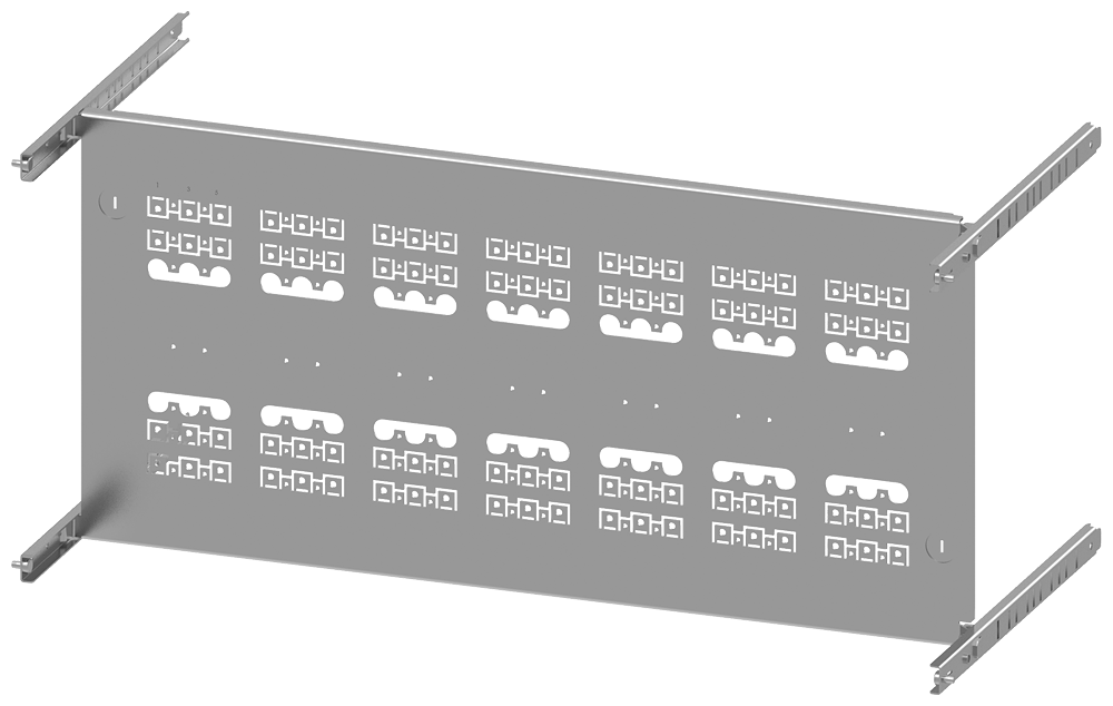 SIVACON S4 EBS SENTRON 3VA 3VA10 (100A) 3-pole Upright mounting position Fixed mounting, Plug-in socket Number of switches 7 Height 350 mm Width 800 mm Branch height 350, 450mm