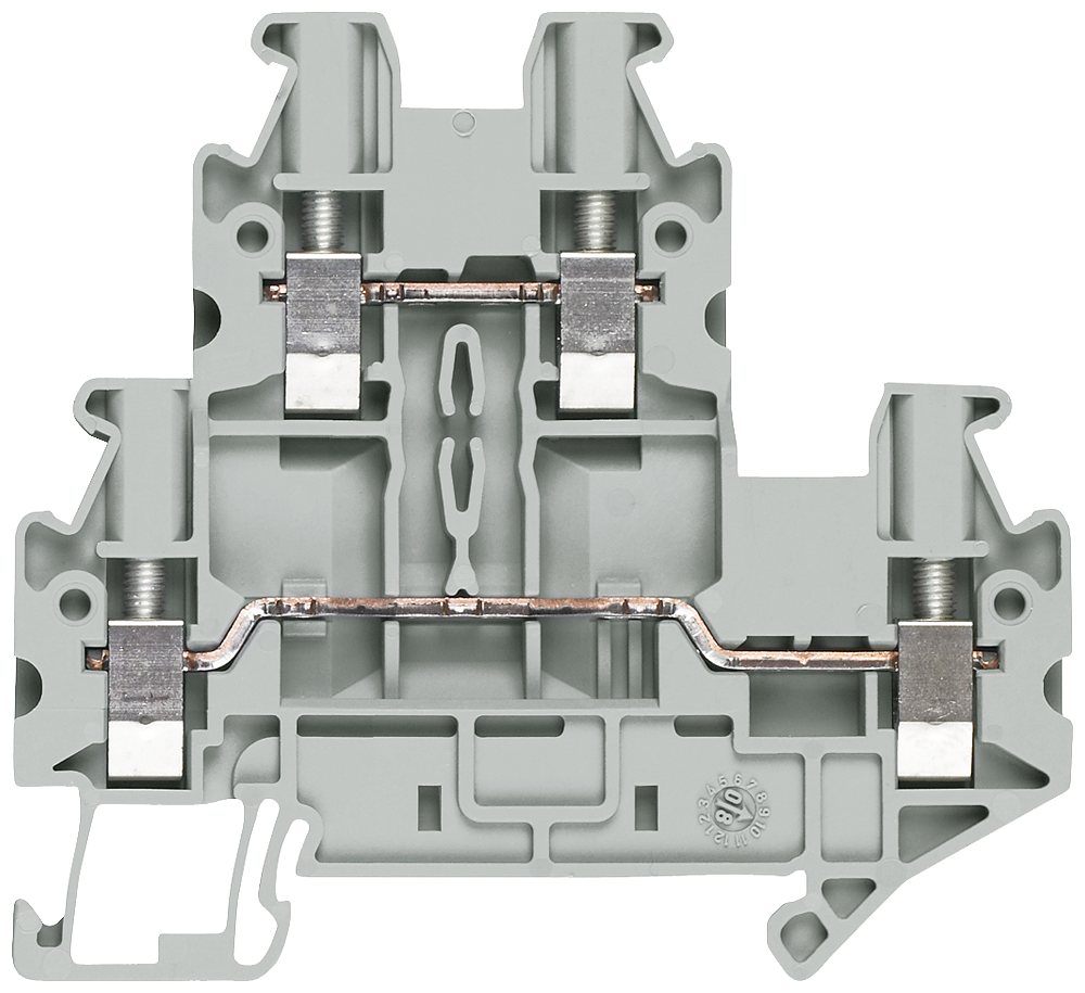 Two-tier terminals with screw terminal Terminal size 4.0 mm2 Terminal width 6.2 mm Color gray
