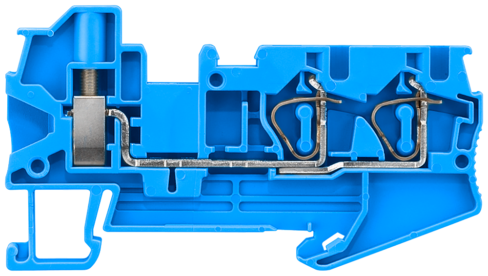 КЛЕММА ГИБРИДНАЯ ПРОХОДНАЯ, 1 ВИНТ И 2 ПРУЖИННЫХ КОНТАКТА: 0.08 - 4 MM2, ШИРИНА: 6.2 MM, СИНЯЯ