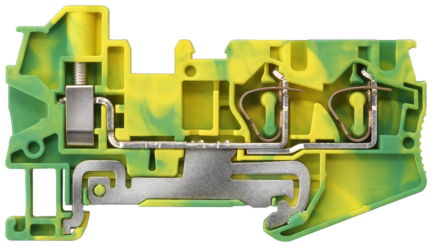 КЛЕММА PE ГИБРИДНАЯ 1 ВИНТ. И 2 ПРУЖИН. ТОЧКИ, СЕЧЕНИЕ: 0.08 - 4 MM2, ШИРИНА: 5.2 MM, ЗЕЛЕНО-ЖЕЛТАЯ