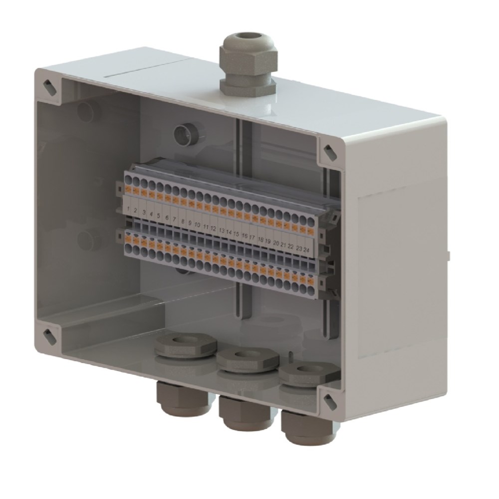 Клеммная коробка 190х140х70мм, 24 клеммы КНБ 2,5-2, 4 кабельных ввода М20
