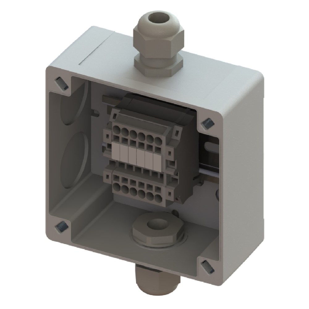 Клеммная коробка 100х100х50мм, 6 клемм КНЗ 2,5-2, 2 кабельных ввода М20