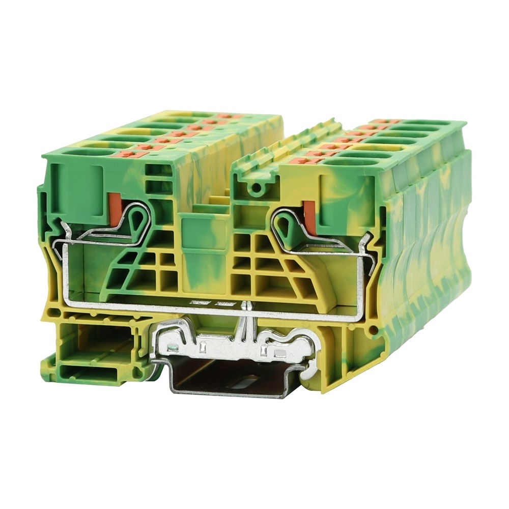 Заземляющая клемма, количество точек подсоединения: 2, тип подключения: зажимы Push-in, 1 уровень, расчетное сечение: 16 мм², сечение: 0,5 мм² - 25 мм², тип монтажа: РМ-35/7,5, РМ-35/15, цвет: желто-зеленый