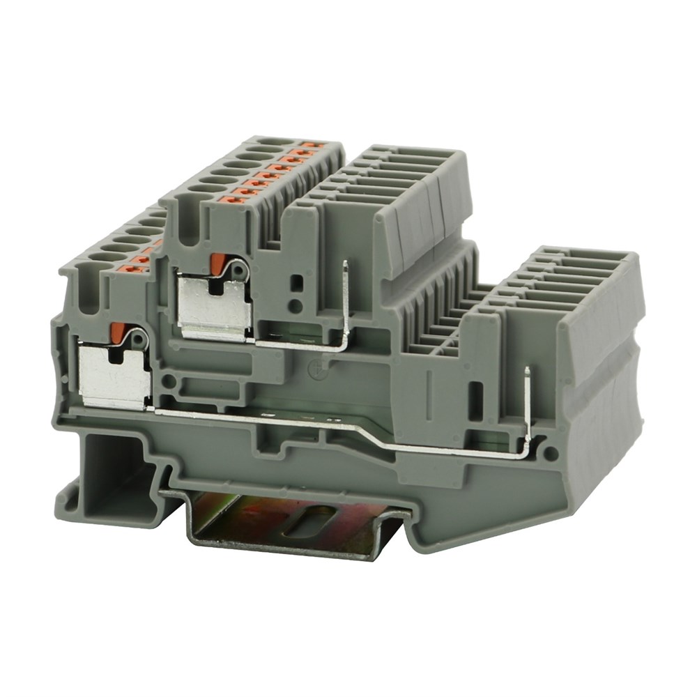 Двухъярусные клеммы с разъемным подключением, номинальное напряжение: 500 В, номинальный ток: 22 A, тип подключения: разъемное подключение / Push-in, расчетное сечение: 2,5 мм², сечение: 0,2 мм² - 4 мм², тип монтажа: РМ-35/7,5, РМ-35/15, цвет: cерый